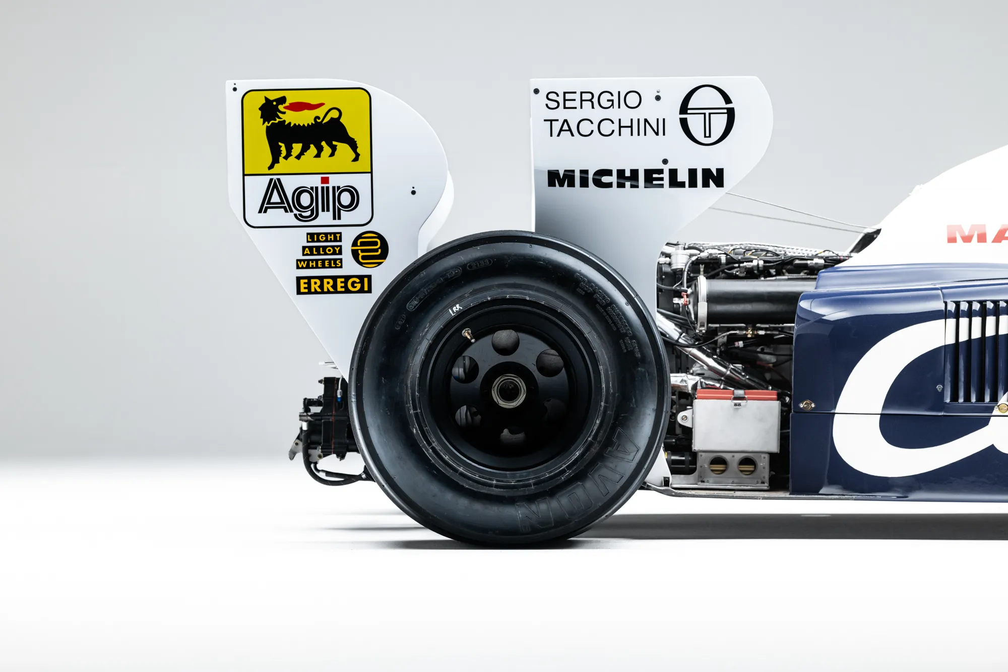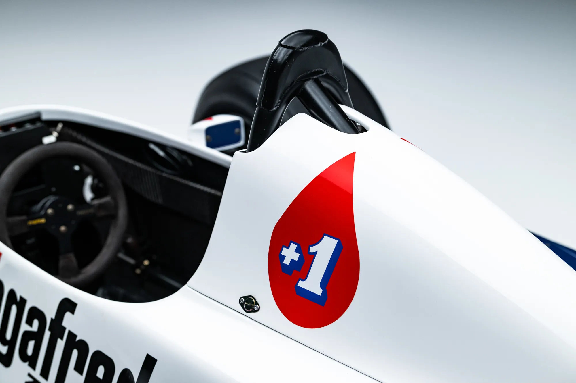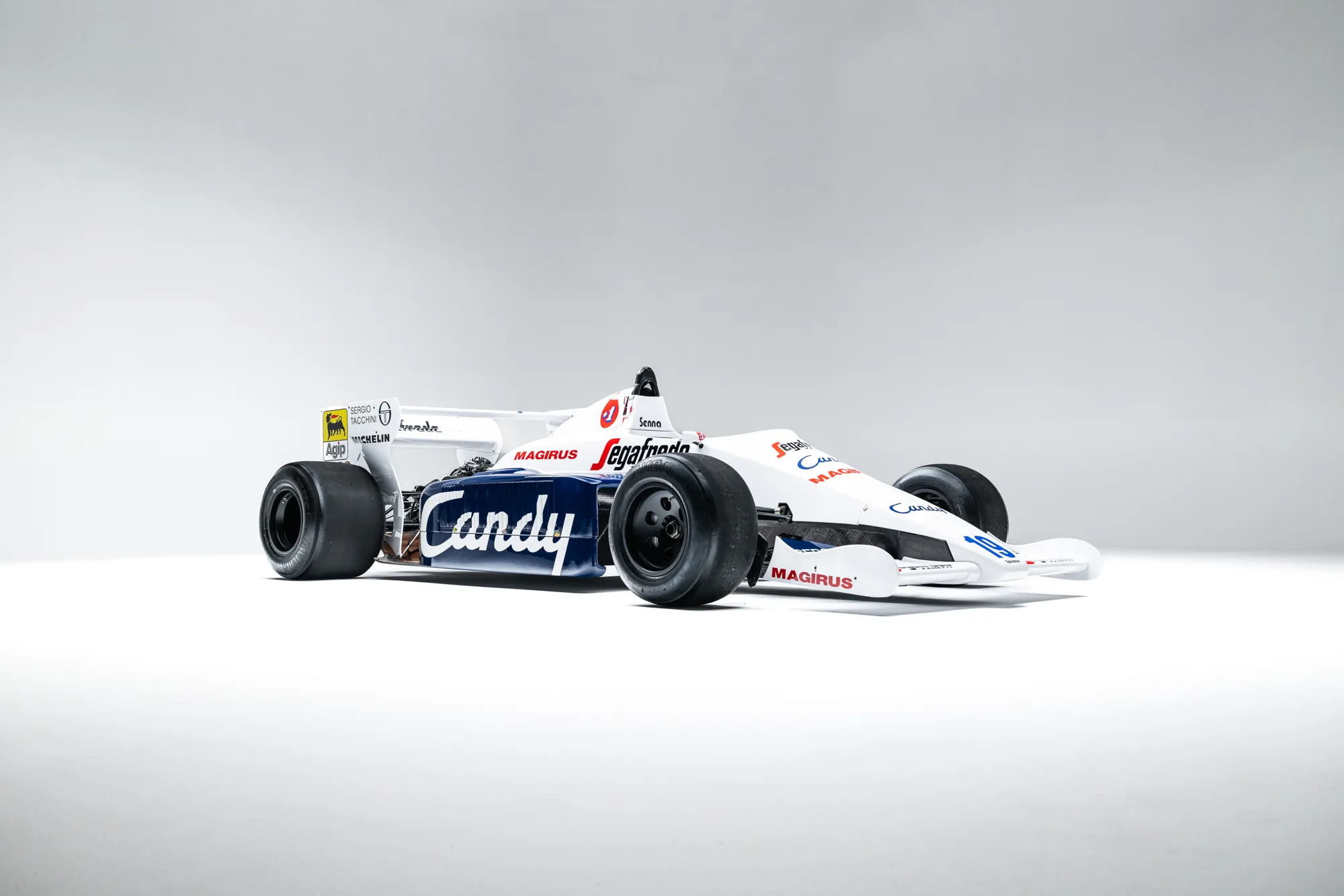 Period chassis logs identify TG184‑02 as Senna’s car for the 1984 Monaco Grand Prix, where it finished second, and the British Grand Prix at Brands Hatch, where it finished third. The same chassis later ran as spare at Hockenheim, Österreichring, Zandvoort, and Monza, with Stefan Johansson driving it to fourth place in the Italian Grand Prix. After the 1984 season it was gifted to Johansson in 1985 and has remained in private hands, with documentation indicating single‑owner custody from 1994. Chassis maintenance notes attribute most period retirements to Hart turbo ancillaries rather than tub integrity, with frequent turbo rebuilds and limited structural re‑bonding recorded. A later restoration by Paul Lanzante Ltd included an engine rebuild, new suspension, extensive body repair, and hand‑painted Candy branding by Gabriel de Meurville to return the car to its 1984 Monaco/Brands presentation.