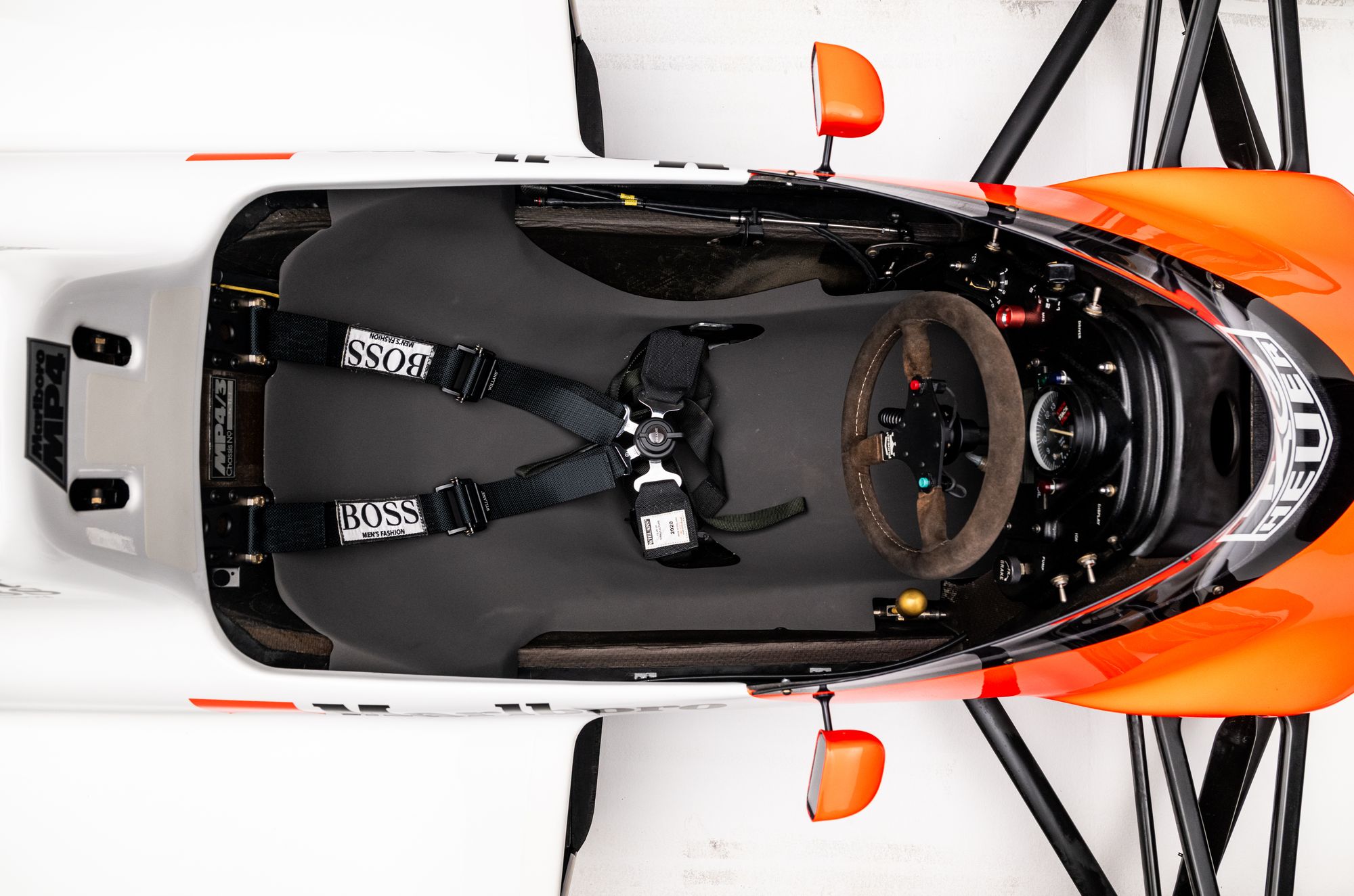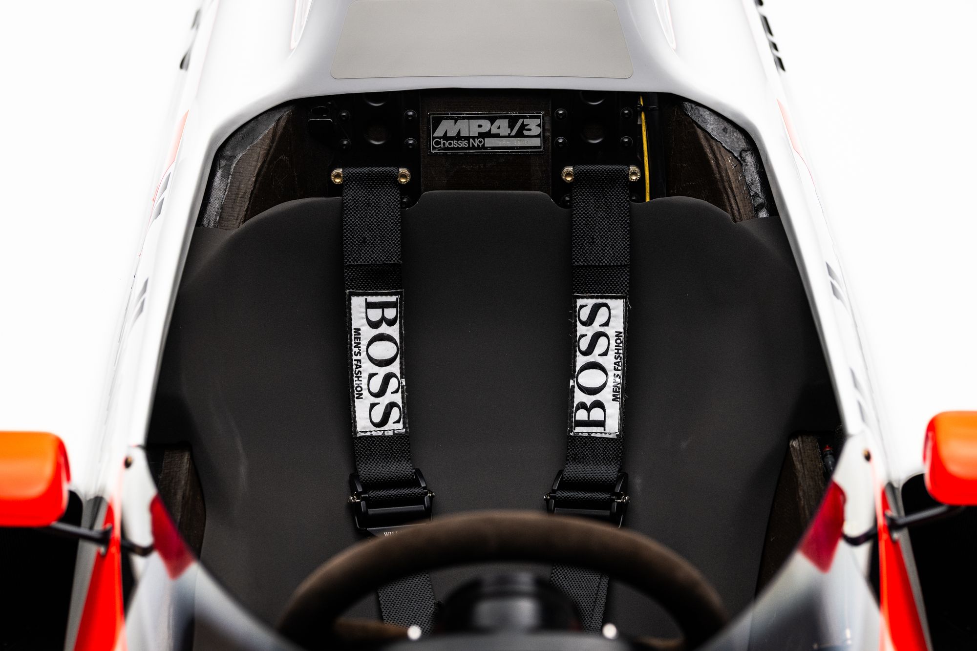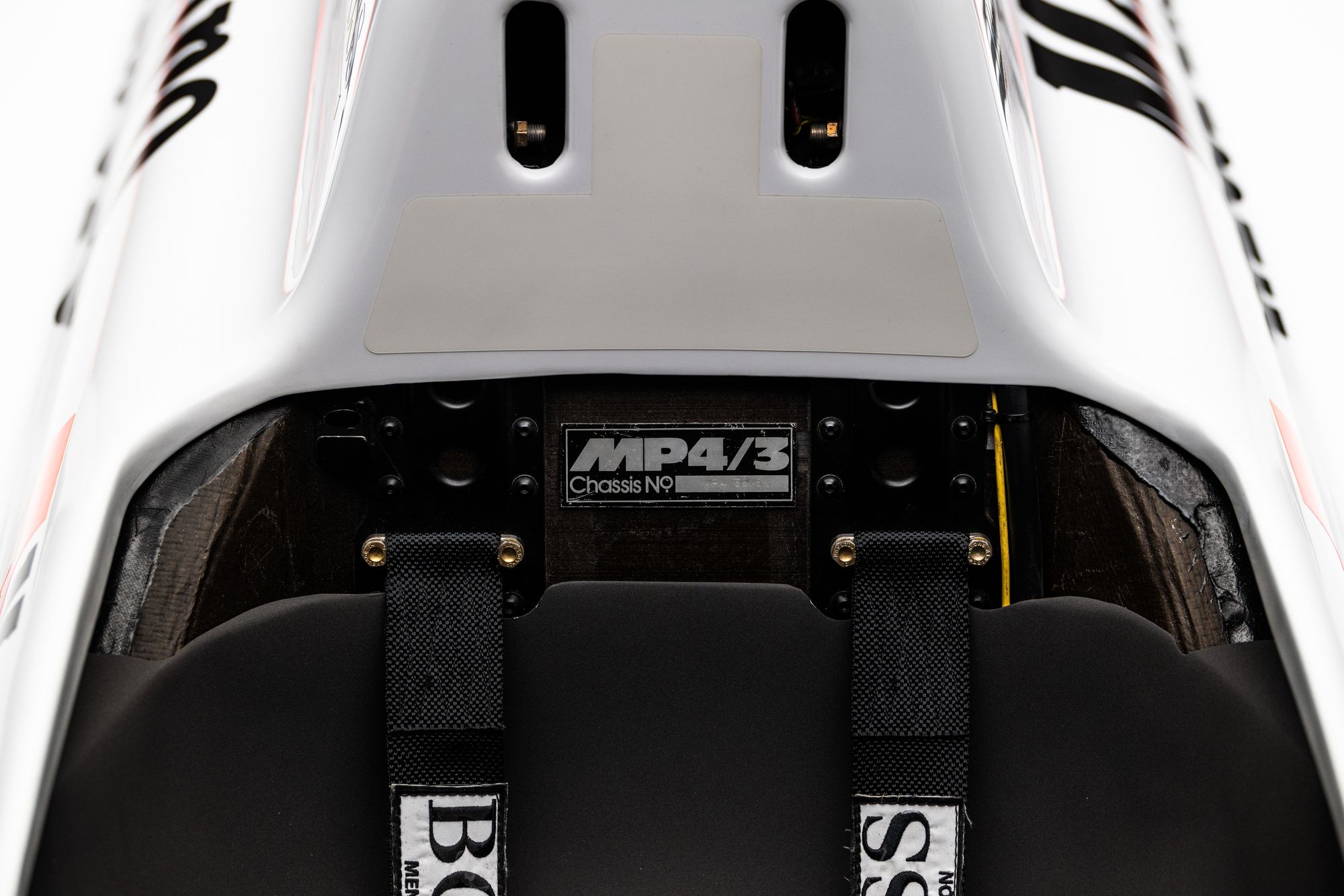 As a non‑homologated test chassis, the MP4‑3B mirrors the MP4/3’s low‑line design language while previewing installation choices fully realized on the MP4/4, making its structural and mechanical details particularly relevant to collectors studying late turbo‑era McLaren design.